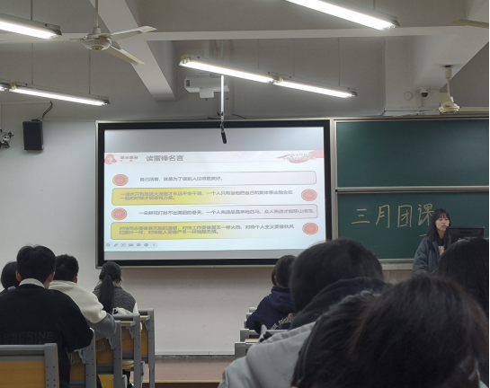 为了弘扬雷锋精神,引导学生学习雷锋精神,学会积极奉献,乐于助人。组织部于3月31日晚在财贞楼321教室举行了“弘扬雷锋精神”的主题团课。