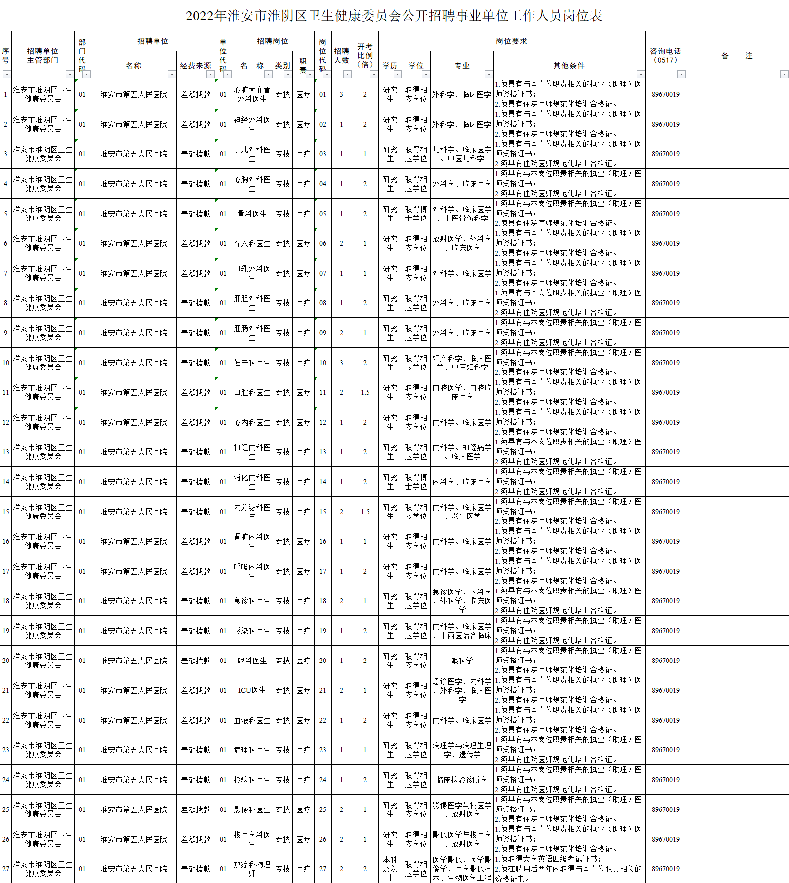 淮安市第五人民医院拟招聘计划来袭!邀您共享美好明天