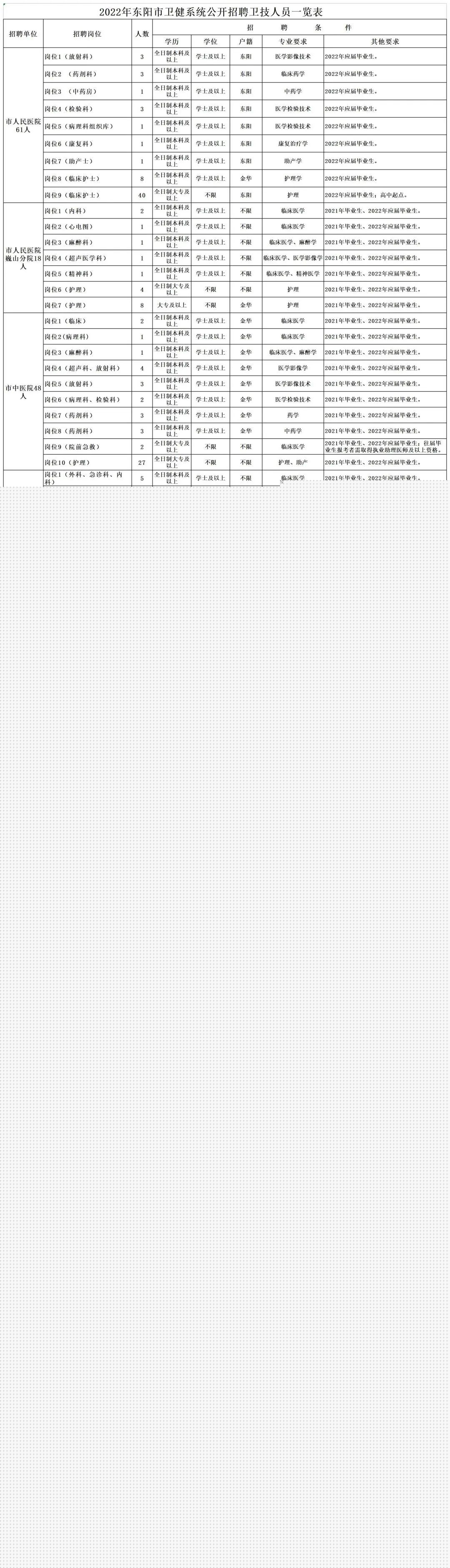 3、户籍要求:除部分单位岗位面向全国、浙江省招聘外,其他单位的岗位均面向金华地区和东阳市招聘。户籍截止时间为2022年1月28 日;