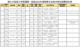浙江中医药大学附属第一医院本次公开招聘45个岗位共82人,全部为医、药、护、技和科研类专业技术岗位。