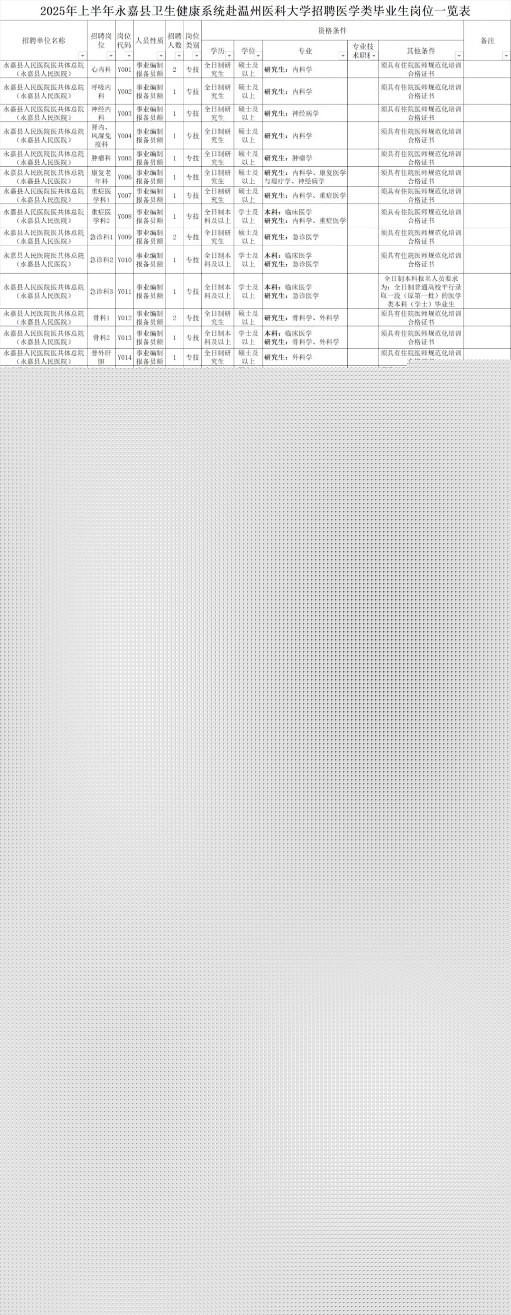 (一)永嘉县人民医院医共体总院(永嘉县人民医院)、永嘉县中医医院医共体总院(永嘉县中医医院)、永嘉县人民医院医共体总院(永嘉县人民医院<妇女儿童分院>)招聘使用事业编制报备员额。