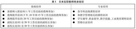 日本是较早实施在职教师培训的国家之一,有先进的培训理念,健全的制度保障和完善的组织保障[21]。1949年颁布的《教育公务员特立法》明确规定,“教育公务员必须不断努力研究与提高修养,完成工作任务。20世纪70年代末期以后,日本教育职员养成审议会提出从终身教育角度研究师资培养和研修制度问题,将终身教育作为一项基本国策[22]。20世纪末修订的《教师改革计划》提出了关于鼓励教师在职参加长期社会体验的培训计划,从中央到地方,甚至到一线中小学校,都成立了相关的组织机构,建立了关于加强在职教师培训的完整组织体系[23]。