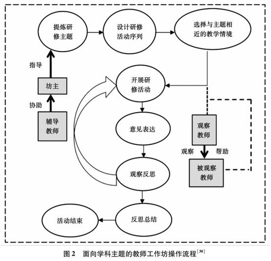教师工作坊由坊主、辅导教师、观察教师和被观察教师等四种角色组成[30],不同角色分工不同,互相协作,构成了以提升教师教育教学能力为目标的学习共同体。为了深化教师培训模式改革,全面提升培训质量,2014年,我国教育部在《网络研修与校本研修整合培训实施指南》[25]中指出,要充分发挥教师工作坊的作用,组建跨校学习共同体,引领教师开展研修。本研究团队先后对陕西安康、辽宁阜新和湖北孝感等地进行了实地调研,发现基于教师工作坊的教师培训已经有了较突出的成效,在很大程度上提升了教师教育教学能力,促进了教师专业化发展。