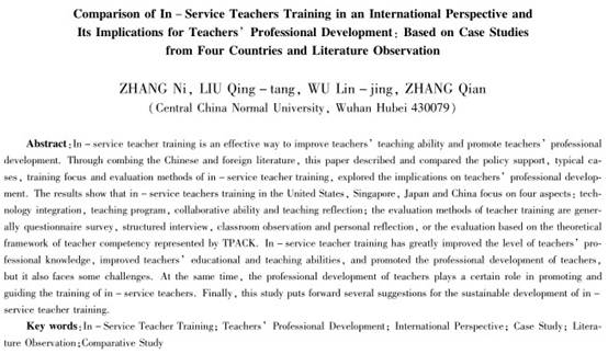 关键词:在职教师培训;教师专业化发展;国际视野;个案研究;文献观察;比较研究