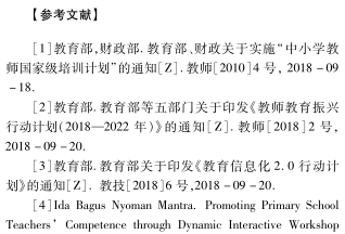 近年来,教师专业化发展的理念正在从参加课程培训逐步向终身学习和持续学习转变。在当今的知识社会,在职教师培训已经被视为一个常态化的过程,甚至被视为教师终身学习的重要形式和组成部分[36]。在职教师培训与教师专业化发展息息相关,相辅相成,相互促进。一方面,在职教师培训提升了教师的教学设计、教学管理、教学实施和教学评价的能力,这将促进教师的教学能力提升和学生的学业进步,从而有助于提高全社会的教育质量;另一方面,教师专业化发展对在职教师培训将起到重要的导向性作用,提升教师积极主动参与在职培训,为培训课程资源建设提供明确的导向,引导教师如何将新的知识技能融入到教学实践中[44]。