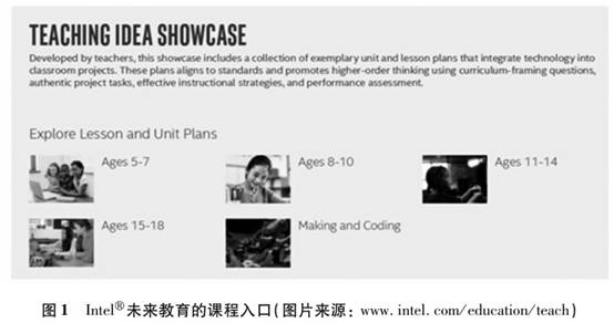 Intel未来教育(www.intel.com/education/teach)是一个帮助教师有效地将技术融入教学的“互联网+教师专业发展”项目,它诞生于美国,但已成功地应用于世界各地的教师培训和学习中,包括越南、乌克兰、南非和中国等[27]。