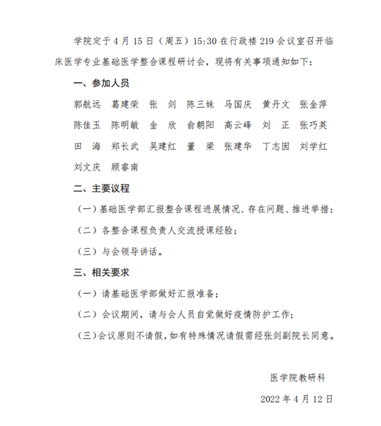 关于召开临床医学专业基础医学整合课程研讨会的通知