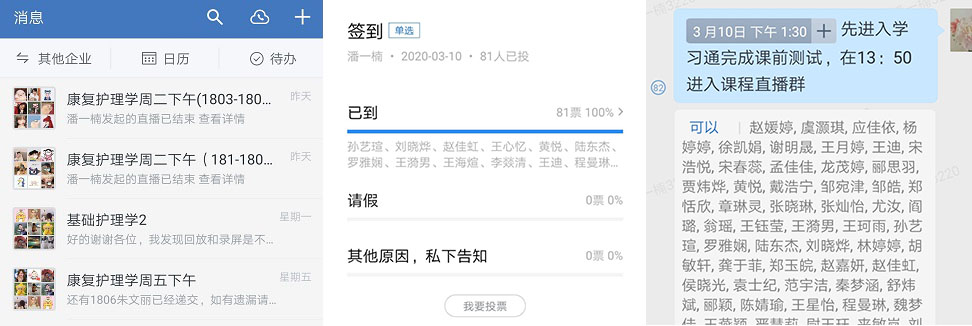 学习工具:企业微信直播平台、超星学习通资源平台、QQ互动答疑平台