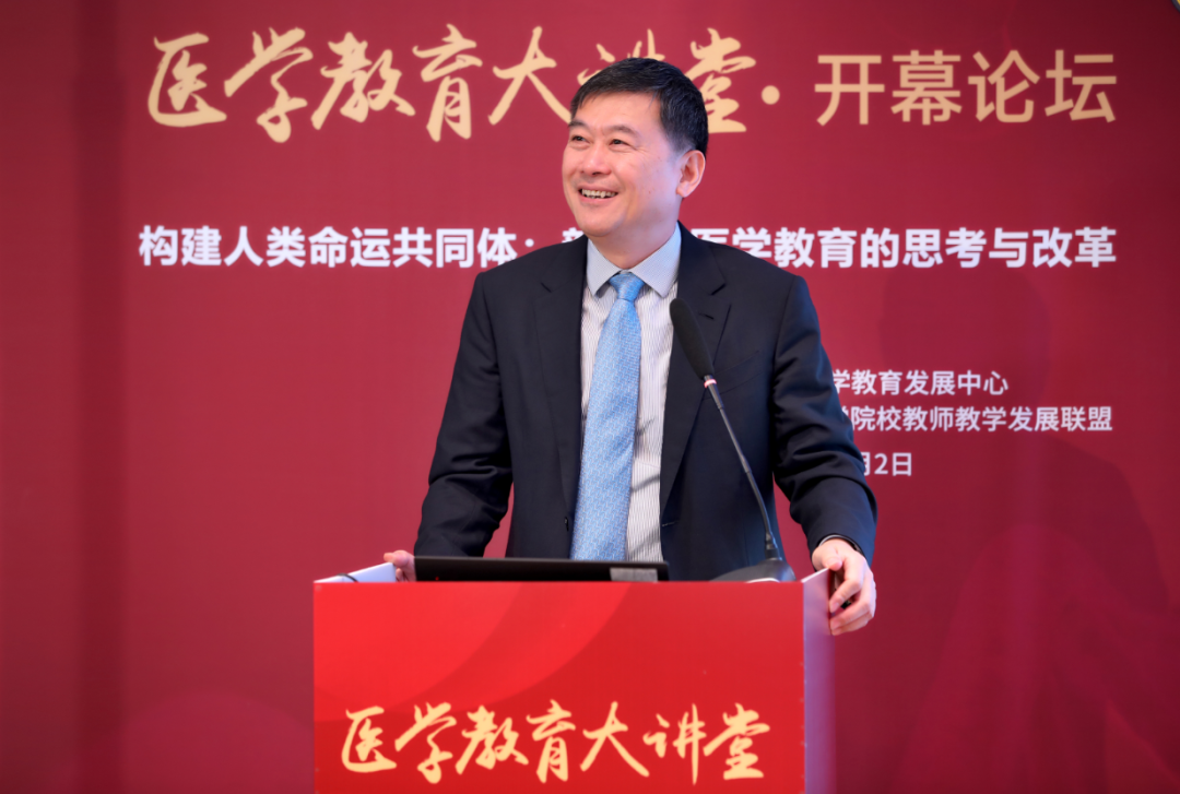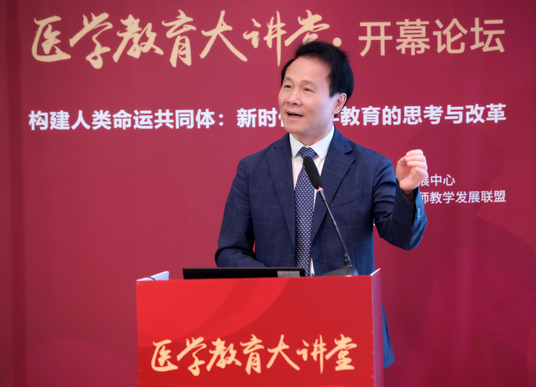 中国工程院院士、北京大学常务副校长、医学部主任、全国医学教育发展中心主任詹启敏作《全球健康背景下医学发展的认识和思考》主题报告,他立足于全球健康发展需求,提出高水平医学发展是社会治理的重要方面,新冠肺炎疫情使得全球健康产生了新趋势与新挑战,医学与健康在国家战略体系中的地位凸显,要促进医学发展,需深化体系融合、加强医学科技创新、提升医学人才队伍培养质量,并开展有效国际合作,共筑人类生命健康共同体。