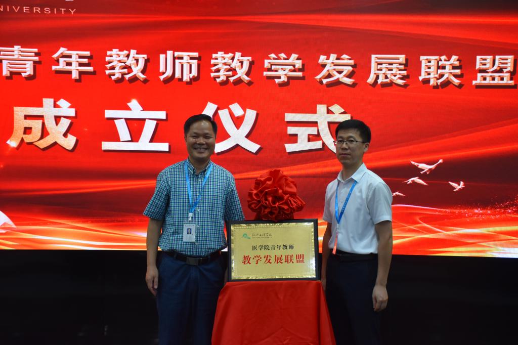 开云最新官方青年教师教学发展联盟成立仪式上,夏瑞明书记和开云最新官方首任青年教师联盟理事长马国庆为教师发展联盟揭牌,葛建荣常务副院长为联盟理事长、副理事长、秘书长颁发聘书,金坚强副书记、陈三妹副院长为联盟理事颁发聘书,联盟副理事长、秘书长方舟院长表态发言。