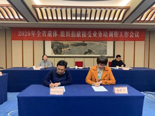 院党委副书记、红十字会副会长金坚强代表学院与浙江省红十字会党组成员、秘书长佘新荷签订新一轮遗体接受单位合作协议书,并围绕组织设置、无语良师纪念活动、生命礼赞场所建设、爱心基金使用等方面介绍了我院2020年遗体接受工作情况。院党委委员、教研科科长、遗体捐献管理工作领导小组办公室主任马国庆随同参会。