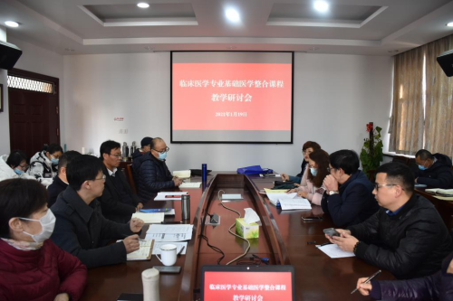 1月19日上午,学院在行政楼219会议室召临床医学专业基础医学整合课程教学研讨会。常务副院长葛建荣、副院长张剑,各整合课程教学团队成员近30人参加会议。会议由院党委委员、教研科科长马国庆主持。