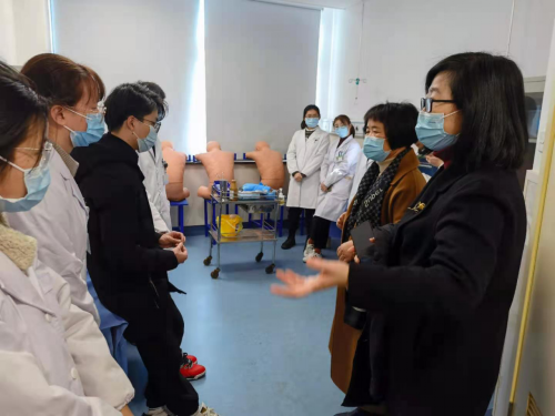 在校附属医院副院长傅永平和临床技能培训中心负责人陈丽琴老师陪同下,陈三妹副院长实地走访了集训现场和竞赛队员们的宿舍,了解集训进度、生活保障、训练状况和遇到的困难等,与集训师生亲切交流,鼓励竞赛队员们要珍惜机会、坚定信心,全身心的投入训练,全力备战省赛和华东区赛。同时,她叮嘱师生们在特殊时期做好防疫防护工作。她对校附属医院高度重视竞赛培训工作、创造良好的生活培训环境、安排最好的培训师资表示衷心感谢,并就下一阶段的培训计划等进行了商讨。