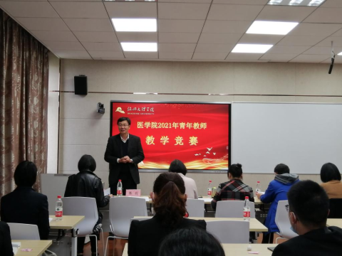 3月31日上午,开云最新官方2021年度青年教师教学竞赛在财贞楼503录播教室举行,来自各系(部)、附属医院、附属社区卫生服务中心的12名青年教师参赛。
