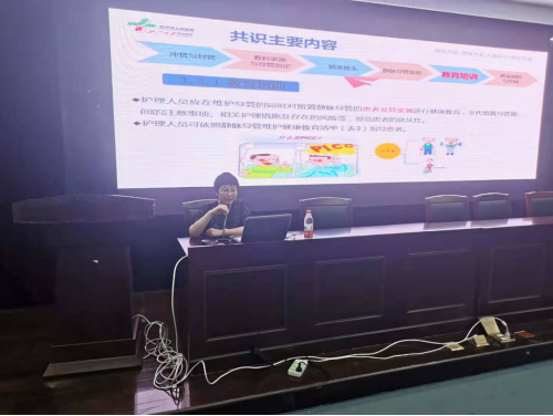 黄玲娟护士长主任讲解了临床静脉输液的新实践进展,她从不同输液器的选择和与此相关的安全事件的发生入手,详细介绍了不同置管方式及应有的护理措施,以及临床易错点及注意点,她同时提醒护理实习学生应当在实践的同时结合辩证思维,这让学生对护理实践安全有了新见识。(护理系供稿人:金孔军)
