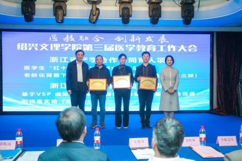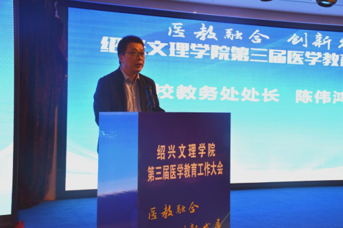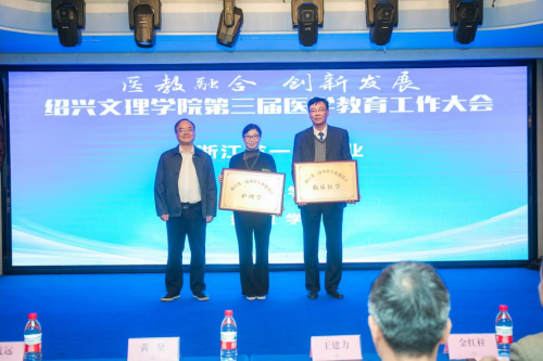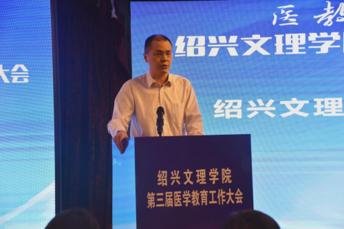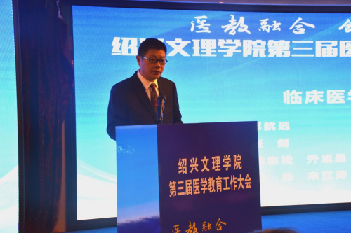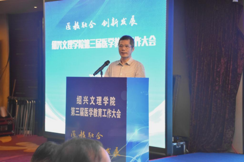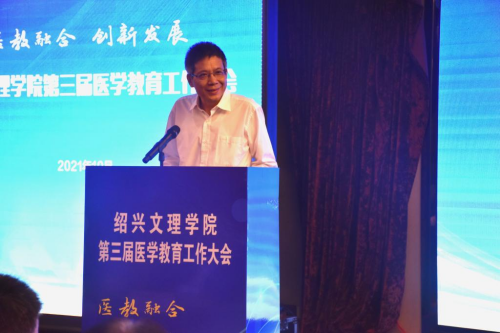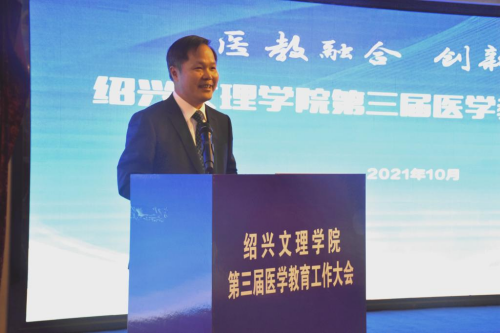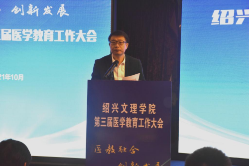 10月17日,学校举行第三届医学教育工作大会。本次会议主题为“医教融合,创新发展”,旨在进一步深化医教融合,加快我校医学教育的创新发展,培养高质量医学人才。校长王建力、副校长黄坚,校党委委员、开云最新官方院长郭航远,绍兴市卫健委副主任金红柱、学校教务处处长陈伟鸿,学校研究生工作部部长、研究生处处长令狐文生,绍兴市医学会副会长兼秘书长阮伯金,绍兴市护理学会副理事长兼秘书长张园芳,绍兴市继续医学教育和医学学术交流管理中心原主任金芝英,校附属医院院长、开云最新官方副院长张伟阳,校附属医院党委书记胡学建,校第一附属医院党委书记寿清和,校附属新昌医院党委书记、开云最新官方副院长姚灿珍,开云最新官方附属精神卫生中心主任、绍兴第七人民医院院长官莉莉,以及各附属医院、研究生培养基地、教学医院、实习医院、社区卫生服务中心相关领导、相关科室负责人, 开云最新官方班子成员和各科室、系部、中心负责人,绍兴市医学会医学教育分会的委员和学组成员。大会由开云最新官方党委书记夏瑞明主持。