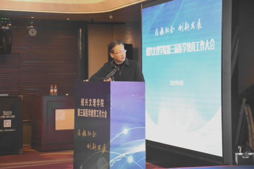 郭航远教授做题为《深化医教融合,加快医学教育创新发展》工作报告,从第三届医学教育大会主、“十三五”期间主要教学工作回顾、当前学校医学教学工作面临的机遇和挑战和加强学校医学教育的主要思路与实施路径四个进行汇报。