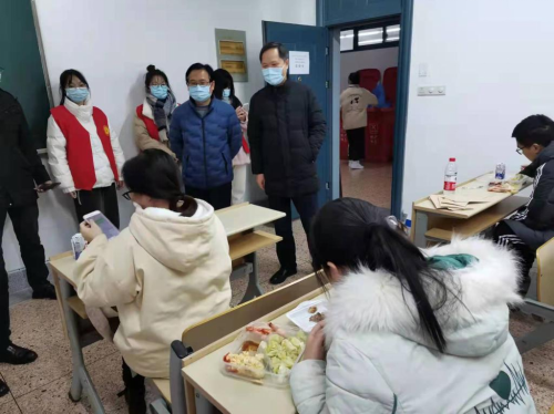 为了保障学生能顺利参加考试,确保全体考生和工作人员的生命安全和身体健康,学院周密安排,精心组织,统筹抓实抓细疫情防控和考试服务工作。学院党政领导领导班子成员和教职工党员志愿服务队成员率先垂范,想学生之所想、急学生之所急,在学生进校服务点、在学生用餐教室、在学生考场外围或为学生作考场引导,或为学生就餐提供暖心服务,或为学生考点送餐,或为学生作考试温馨提醒,为应考学生鼓劲加油,以暖心有力之举,最大程度保障考生顺利参加考试。