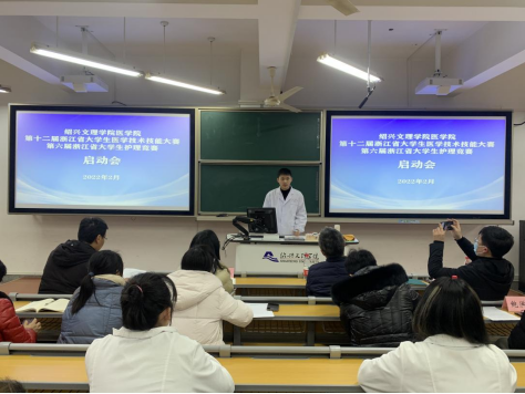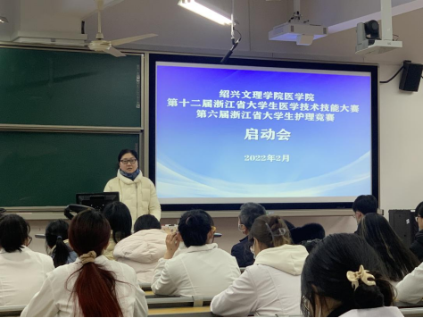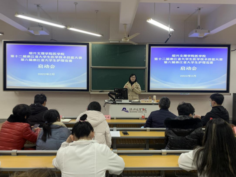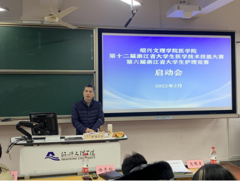 2月21日下午,第十二届浙江省大学生医学技术技能大赛、第六届浙江省大学生护理竞赛启动会在财贞楼217教室召开,副院长张剑、陈三妹,附属医院副院长徐志松,教研科、临床医学部教管办、护理系、学生科、医学实验中心负责人、全体集训队员和指导教师代表参加了会议,张剑副院长主持会议。