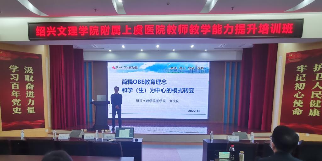 为全面深入学习、宣传、贯彻二十大精神,进一步提升教师队伍教育理念知识,学习现代教学方法和现代教育技术,提升附属医院教师团队的整体教学能力、教学水平,构建专业课教师教学新理念、新方法,“校附属上虞医院教师教学能力提升培训班”于12月10至11日在医院报告厅成功举办。校附属上虞医院党委书记龚月江,院党委委员、教研科科长、临床医学部教管办主任马国庆,院教师发展中心主任刘文庆出席开班仪式,医院各教研室主任、教学秘书、科教科相关负责人共计50余人参加培训,校附属上虞医院副院长章鲁艇主持开班仪式。