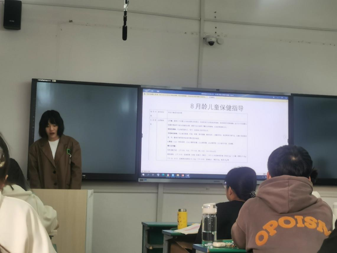 本次课程由李晖老师主讲,教学内容为儿童保健,通过贯通教学内容、调查学情、翻转课堂等环节来展开教学,通过设计团队作业“为不同月龄儿童制定保健指导方案”,以小组形式、列表式制定某一年龄段的针对性的保健指导方案来进行课程导入。
