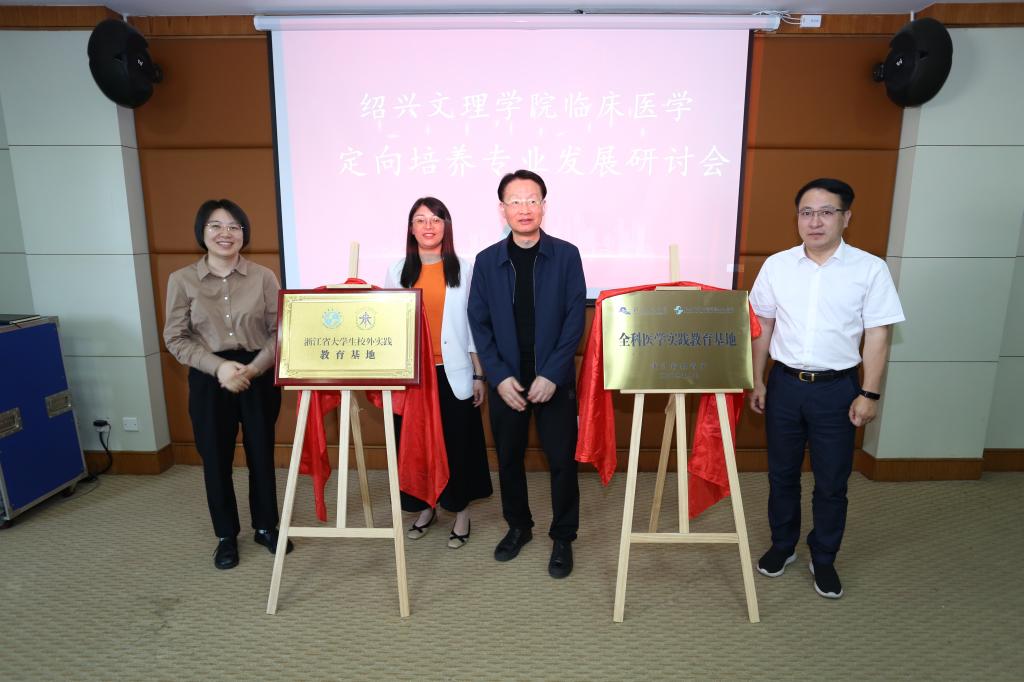 根据《浙江省教育厅办公室关于开展普通本科高校“十四五”省级重点建设实验教学示范中心和省级大学生校外实践教育基地建设工作的通知》要求,经学院申报、省教育厅审核,对我院和绍兴市中心医院医共体总院联合申报的全科医学实践教育基地予以立项。孙洁、郭航远、孙燕、屠传建共同为省“十四五”大学生全科医学校外实践教育基地揭牌。