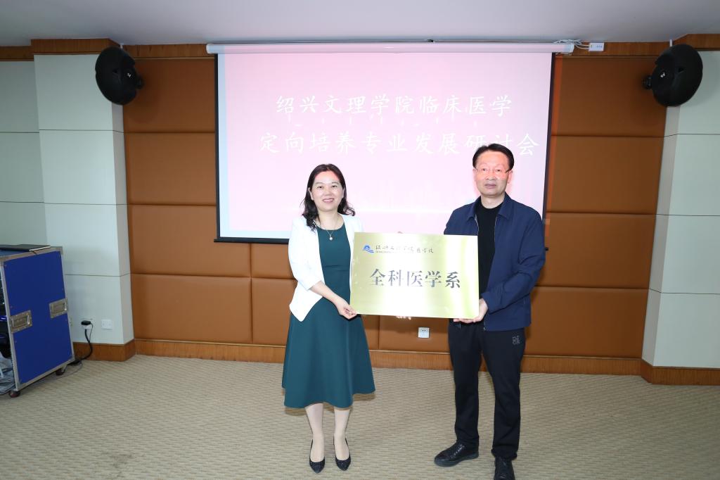 为贯彻落实国务院办公厅《关于加快医学教育创新发展的指导意见》,进一步做好全科医学教育和全科医学实践教育基地建设工作,学院在临床医学部下设全科医学系,挂靠校附属中心医院。会上举行了全科医学系授牌仪式,郭航远授牌,陈丽娜接牌。