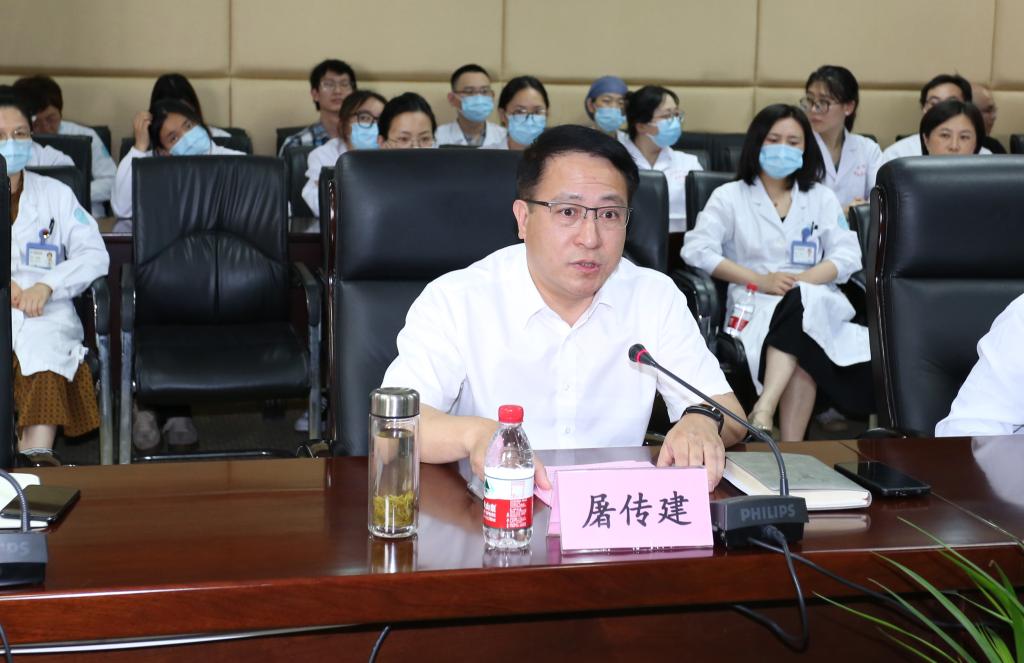 屠传建致欢迎辞。他表示,医院将整合资源,进一步重视教学系统化管理,加强全科专业学生培养,强化全科医学教育基地建设,全力做好全科医学教育工作,为绍兴地区培养高素质、高质量、高水平的全科人才作出更多的贡献。