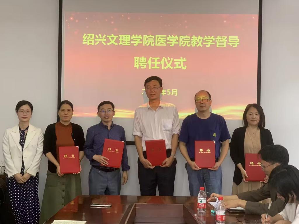 会议举行了新一届教学督导聘任仪式,金欣为新一届教学督导组成员张剑、陈佳玉、张建华、彭海生、徐水琴颁发聘书并合影留念。