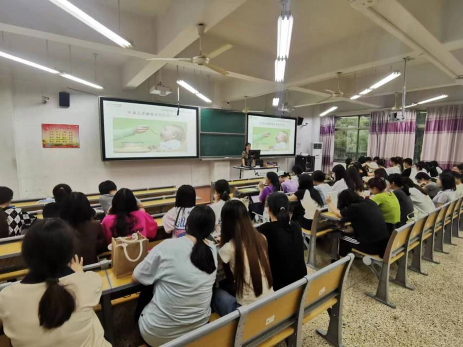 马兰老师以康复护理中的吞咽障碍为主题展开讲授。她从吞咽障碍的原因、吞咽存在的困难,吞咽障碍的评估,吞咽障碍的处理等环节进行了条分缕析的论述。马兰老师的讲授贴近临床,为即将踏上临床实习的护生上了生动的一课。