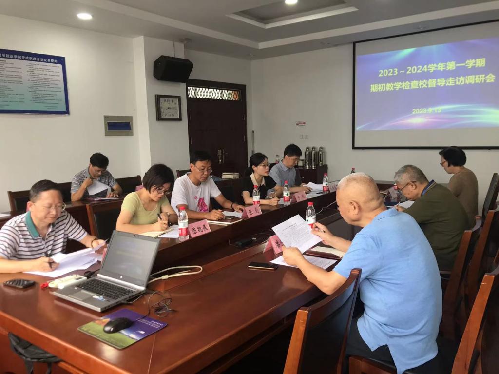9月13日上午,校教学督导陆仲坚、刘丽华、潘伟槐来院督查期初教学准备工作。副院长金欣,督导组组长张剑,教研科、医管办、研究生办相关负责人参加汇报会。院党委委员、教研科科长马国庆主持汇报会。