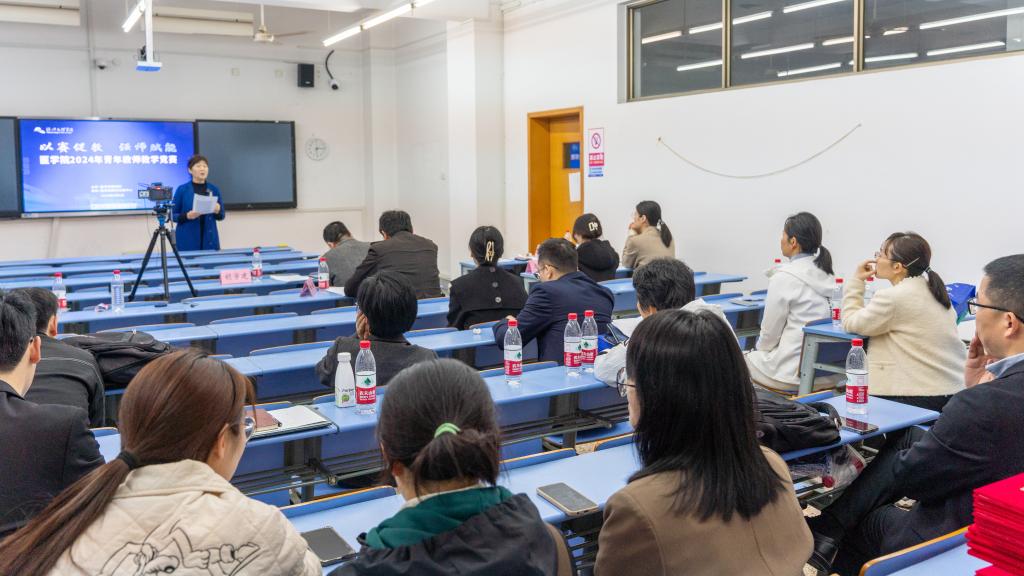 4月8日下午,开云最新官方2024年“以赛促教、强师赋能”青年教师教学竞赛在财贞楼411教室举行,来自各系部和9家附属医院、中心的14名青年教师同台竞技,开展教学交流。