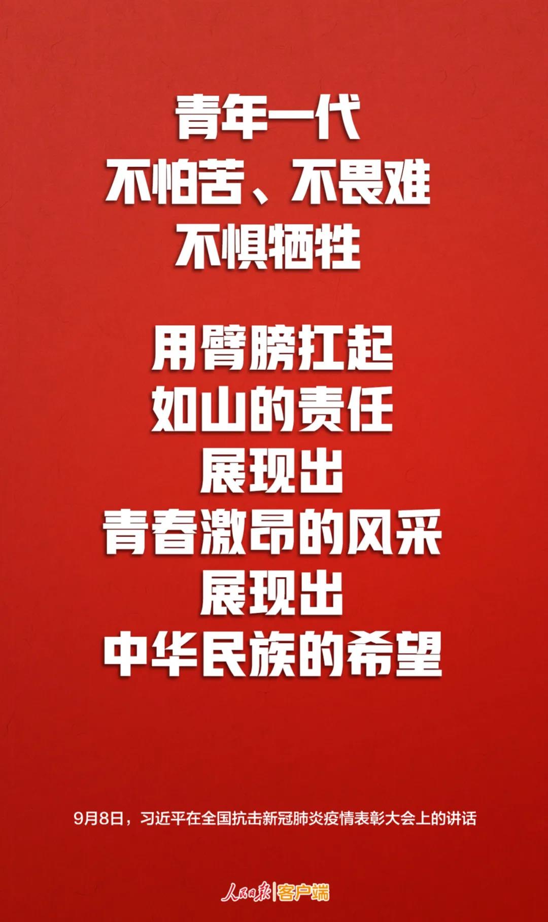 9月8日上午,全国抗击新冠肺炎疫情表彰大会在北京人民大会堂隆重举行。习近平向国家勋章和国家荣誉称号获得者颁授勋章奖章并发表重要讲话。在讲话中,习近平就伟大抗疫精神进行了深刻阐述。他说,在这场同严重疫情的殊死较量中,中国人民和中华民族以敢于斗争、敢于胜利的大无畏气概,铸就了生命至上、举国同心、舍生忘死、尊重科学、命运与共的伟大抗疫精神。