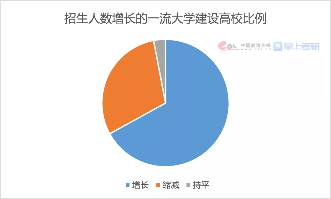 2021年“双一流”高校的硕士研究生招生规模继续增长。经过统计,“双一流”建设高校的招生计划中,超过67%的一流大学建设高校和超过77%的一流学科建设高校的2021年招生计划都有所增长。
