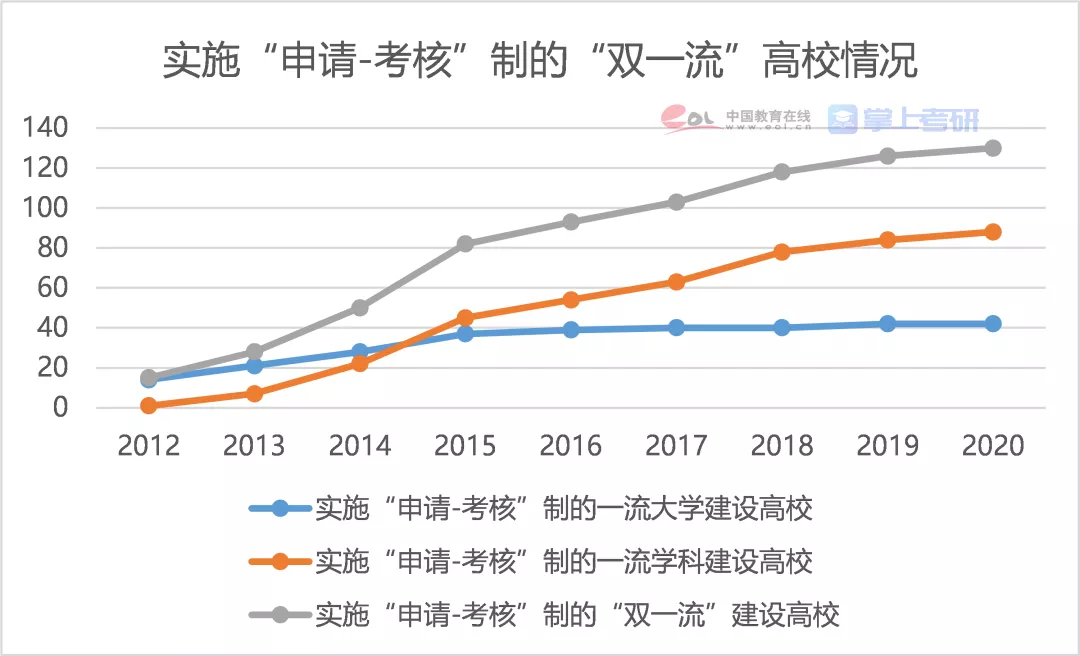 截至2020年,我国“双一流”建设高校中已经实施“申请-考核”制的有127所,占该类院校的92.7%,一流大学建设高校均已实施“申请-考核”制,一流学科建设高校中实施“申请-考核”制的有85所。