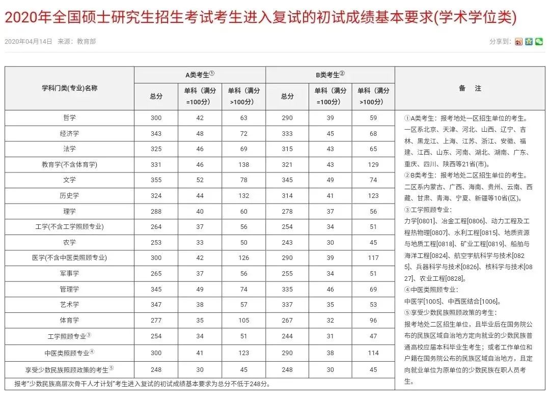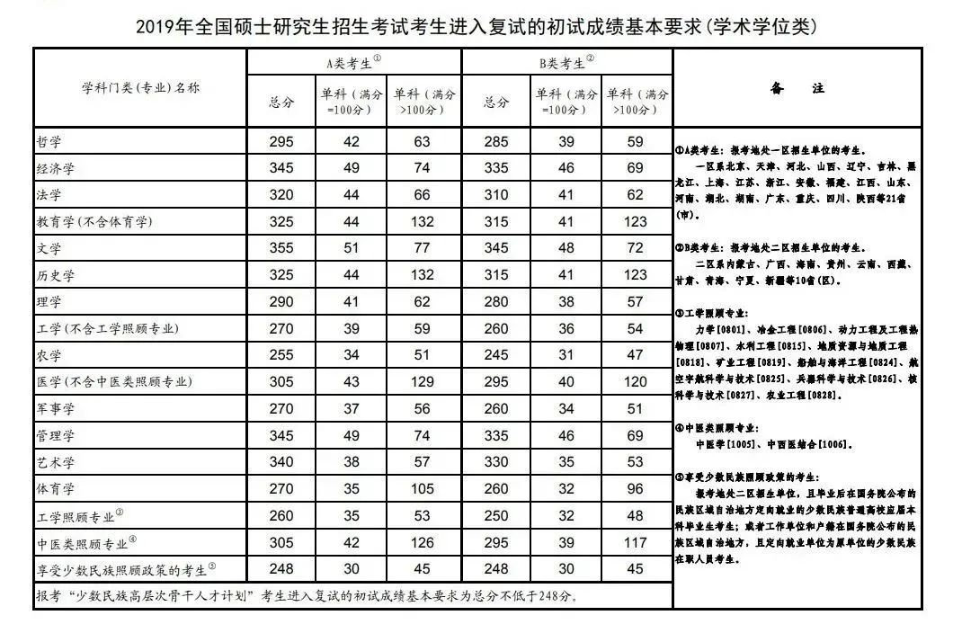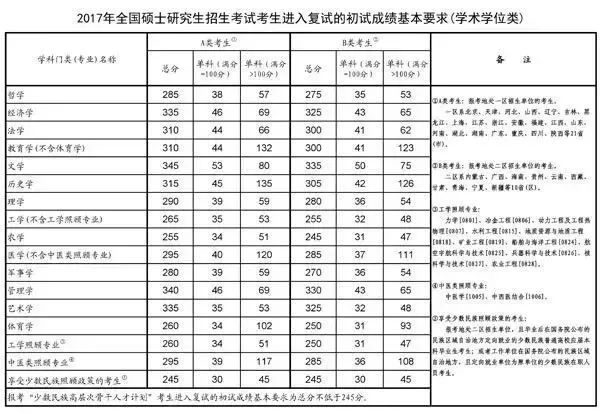 全国硕士研究生招生考试考生进入复试的初试成绩基本要求(学术学位类)(2017-2021年)