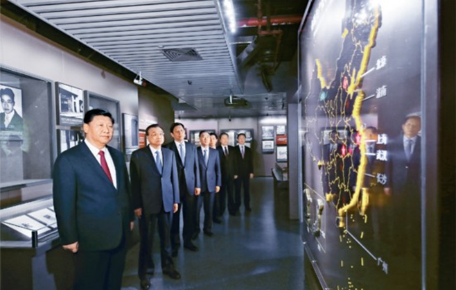 年10月31日,中共中央总书记、国家主席、中央军委主席习近平带领中共中央政治局常委李克强、栗战书、汪洋、王沪宁、赵乐际、韩正,瞻仰上海中共一大会址和浙江嘉兴南湖红船。这是31日上午,习近平等在上海中共一大会址纪念馆参观。 新华社记者 兰红光/摄