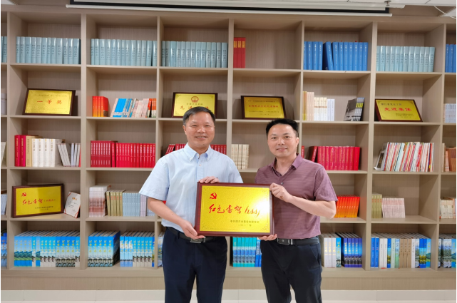 5月25日,绍兴市委党史研究室副主任郑红光将“红色书架”授牌给我院党委书记夏瑞明,标志着绍兴市委党史研究室“红色书架”正式落地我院党员之家。