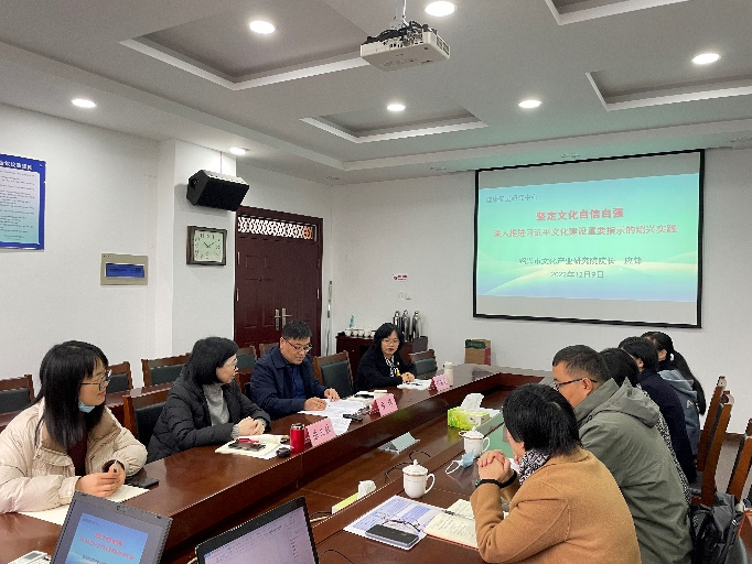 12月9日上午,绍兴市文化产业研究院院长、绍兴市文化产业促进会副会长兼秘书长应锋应邀来健康促进研究中心,做“坚定文化自信自强 ——深入推进习近平文化建设重要指示的绍兴实践”为题的专题讲座。讲座由中心主任陈三妹教授主持,邢海燕副院长及中心核心成员教师参加讲座。