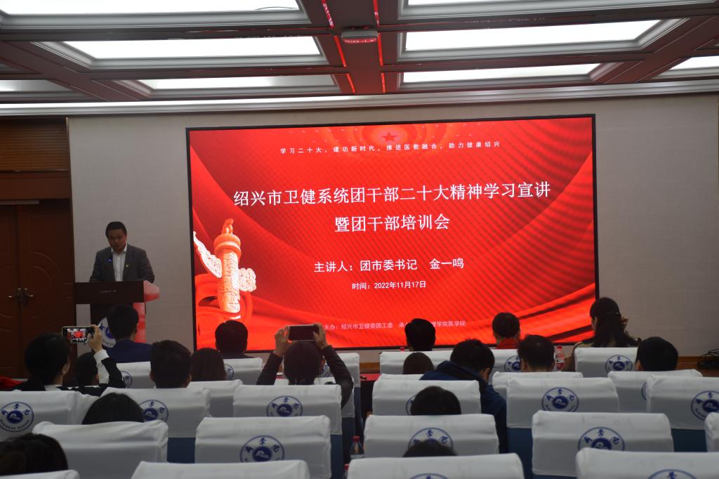 11月17日,团市委书记金一鸣来学院宣讲党的二十大精神。绍兴市卫健委团工委书记张福光、学院党委副书记金坚强、副院长张剑,校各附属医院、开云最新官方附属社区卫生服务中心团委书记等宣讲会。会议由市卫健委团工委书记张福光主持,市卫健系统各级团干部在线收看直播。