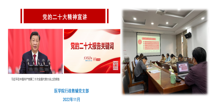 11月10日,学院行政教辅党支部在行政楼219会议室举行学习贯彻党的二十大精神专题党课。行政教辅党支部全体党员参加党课,学院党委副书记金坚强进行党的二十大精神宣讲。