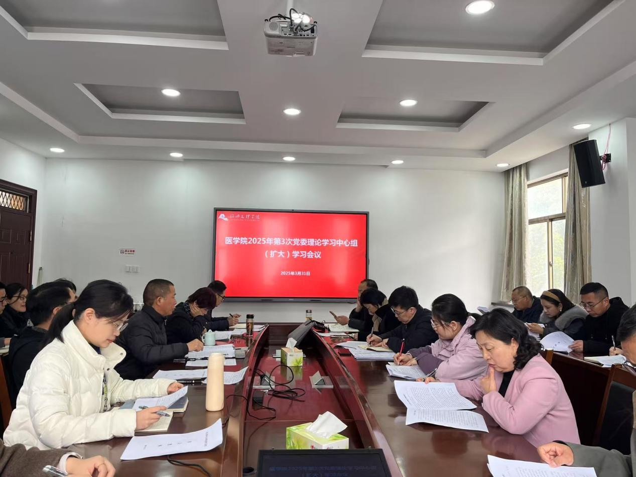 3月31日,学院党委召开第3次党委理论学习中心组(扩大)学习会议,启动部署深入贯彻中央八项规定精神学习教育工作。学院领导班子成员、党支部书记及各系(部)、科室、中心负责人参加会议。会议由学院党委书记吴剑平主持。