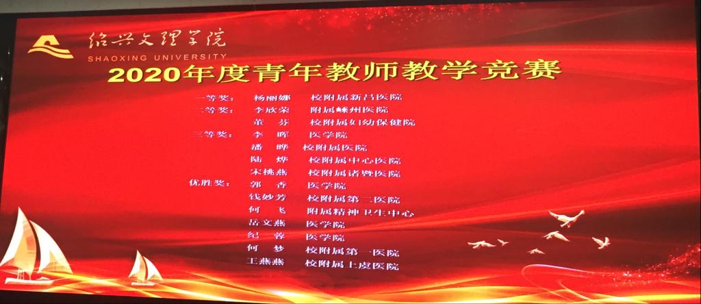 姚克林老师是绍兴文理学院附属医院放射科科教组组长兼开云最新官方医学影像系秘书,近年来多次代表医学影像系参加全国性和校内教学比赛并获佳绩。纪蓉老师是绍兴文理学院附属第二医院放疗科临床和教学骨干,这次作为医学影像系唯一代表参加全院性竞赛并斩获佳绩。