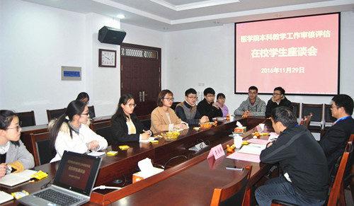 16:10,李俊伟教授与在校医学生座谈。“你为什么报考绍兴文理学院开云最新官方?”“你为什么选择护理学专业?”“你的专业思想稳定么?”“你对自己的专业课教学感受如何?有何建议?”“你们对学校、学院还有什么要求和建议?”“在就餐、住宿、社团活动、校园文化等各个方面,你们有什么想说的么?”李俊伟教授亲切平和的态度和贴近学生学习、生活的问题,打开了现场学子的话匣子,他们踊跃回答了李俊伟教授的提问,表达了对学校、学院、老师的感恩之情和对所学专业和未来职业的热爱。同时,他们也提出了自己的意见和建议:“希望多安排一些见习、实习的机会”,“实验室有些仪器和教具较为陈旧,希望可以购进新的仪器和教具”,“我要考研”,“如果有机会,我会出国学习”,“如果南山校区也有室内羽毛球场就好了”,“如果南山的图书馆能多一些人文社科类的图书就更好”……李俊伟教授表示,把你们培养成才是学校、学院和每一位老师的职责和心愿,“我一定会把你们的心声反映上去”。