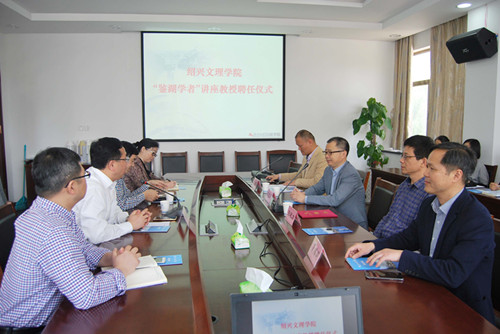 4月28日上午,学校在我院行政楼219会议室举行简朴而隆重的聘任仪式,聘任我院放射专业82届校友、东南大学附属中大医院院长滕皋军教授为“鉴湖学者”讲座教授。校长王建力,校党委委员、院党委书记柳国庆,校附属医院副院长夏瑞明,校人事处副处长罗润锋,校友联络办公室副秘书长许孟飞,院领导袁油迪、陈三妹,以及学院中层及以上干部出席聘任仪式。