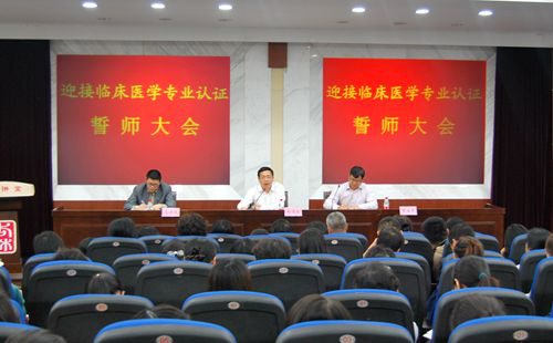 柳国庆书记作重要讲话。他说,今天开云最新官方全体教职员工和临床医学专业的学生代表200余人在此召开誓师大会,标志着迎接专业认证的工作已经进入最后冲刺阶段。在文理学院的发展历史上,召开过两次誓师大会;今天第三次召开誓师大会,充分体现了临床医学专业认证对创办绍兴大学的极端重要性,也充分体现了这项工作对开云最新官方生死存亡的极端重要性。为此,从学校领导到学校各职能部门负责人,从开云最新官方党政班子成员到每一位教职员工,都积极投入到了专业认证的各项准备工作中。对前期已取得的成绩,对老师们表现出来的奉献精神,柳书记给予充分肯定和高度赞扬。