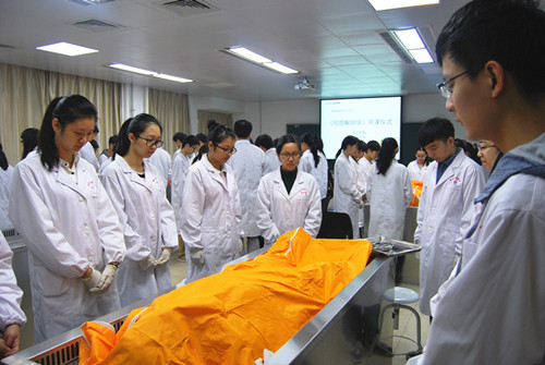 开课前,举行了主题为“感恩奉献·敬畏生命——向无言良师致敬”的《局部解剖学》开课仪式,基础医学部、学生科、团委相关负责人参加仪式。