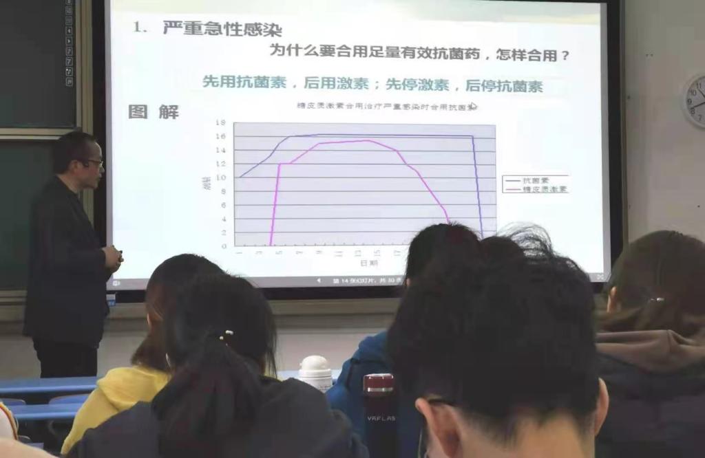俞朝阳老师的《药理学》课程最近获得省线上线下混合式一流课程,在课程思政、课程整合方面积累了丰富的经验。通过举行全院的公开课,能够带动全院的课程思政、课程整合、线上线下混合和翻转课堂等教学改革。(基础医学部)