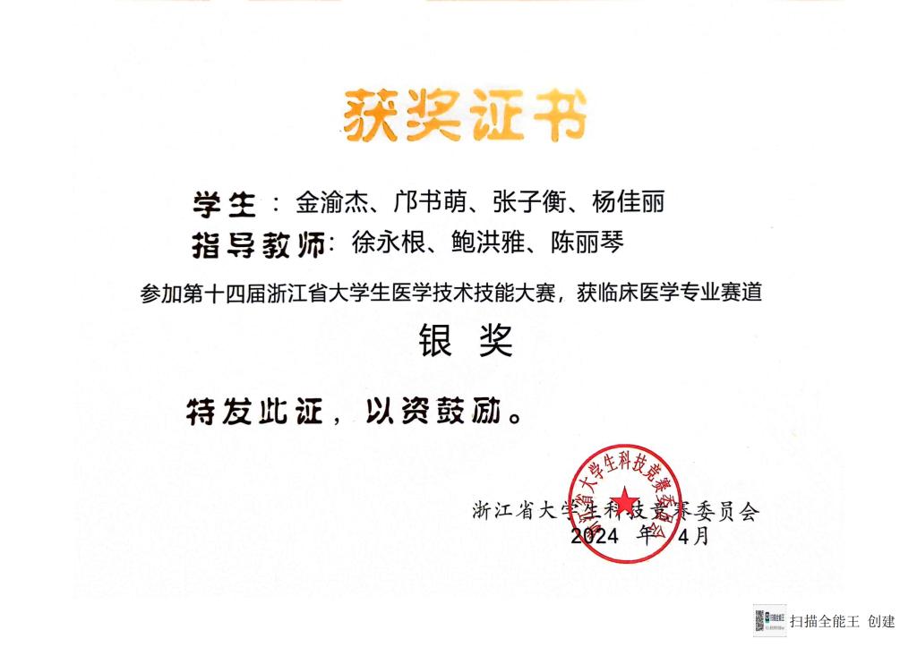 近日,第十四届浙江省大学生医学技术技能大赛圆满落幕。我院参赛队获临床医学专业赛道银奖1项、铜奖2项。