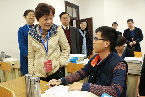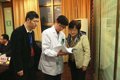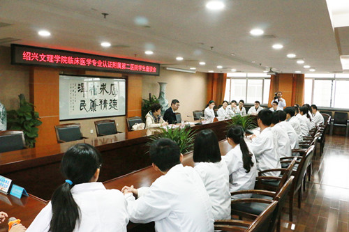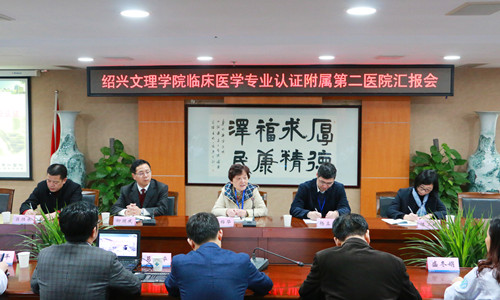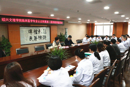 听取院长汇报后,杨棉华教授、杨立斌教授观摩了病例讨论、教学查房,实地走访考察了内科教研室、外科教研室、妇产科教研室、儿科教研室、临床技能培训中心、OSCE考试中心、学生公寓等相关科室(设施)。考察临床技能培训中心和OSCE考试中心时,杨棉华教授多次表示,绍兴文理学院开云最新官方开展“2.5+2.5”院校一体化教学模式改革,充分共享了校第二附属医院优良的教学设施、仪器设备等优质资源,这种做法非常值得肯定。在为学生专设的自习室和阅览室,杨棉华教授与我院学生亲切交谈,询问他们在医院学习、生活的感受。走访各个教研室、查阅相关资料后,杨棉华教授评价说,“校附属第二医院对临床医学专业认证工作准备很充分,相关资料齐全,管理规范,有很多特色和亮点”。